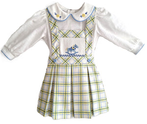 Pretty Originals Blue Rocking Horse Smocked Pinafore PREORDER
