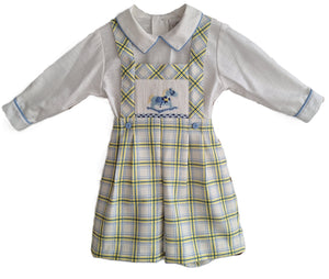 Pretty Originals Baby Blue Rocking Horse Smocked Suit PREORDER