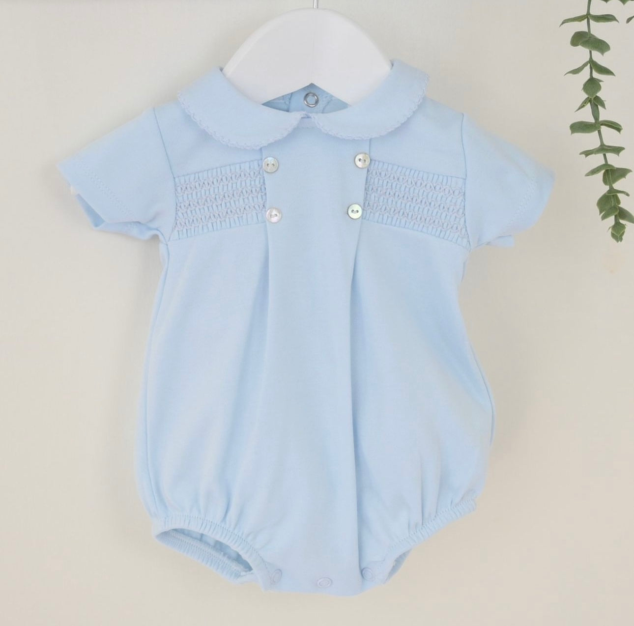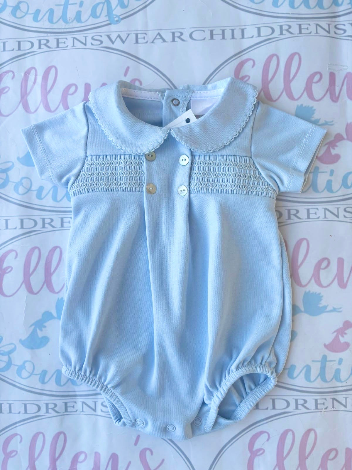 powder blue cotton smocked romper - also available in cream