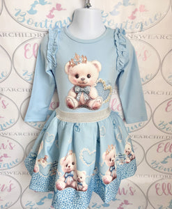 Pretty Originals Baby Blue Rocking Horse Smocked Suit PREORDER
