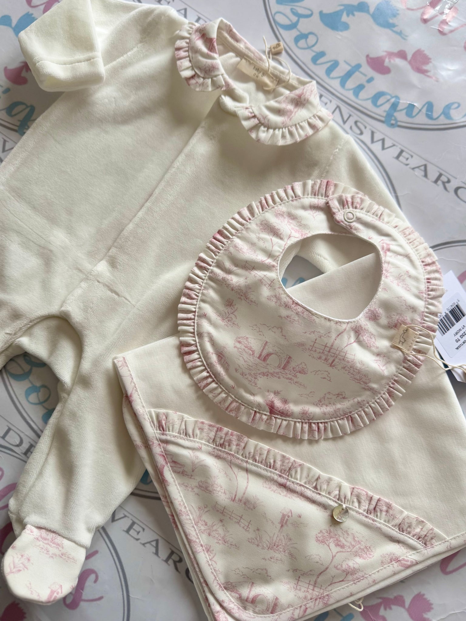 Baby GI Pink Frill Vintage Velvet Babygrow